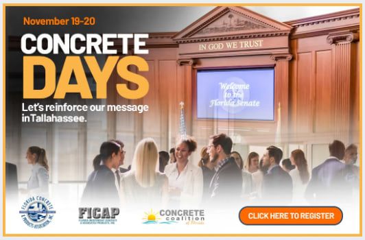 Every year, leaders from the Concrete Coalition of Florida gather in Tallahassee for Concrete Days - a vital opportunity to meet with legislators, show the true value of concrete, and help shape public policy that builds safer, stronger communities. This is your chance to join a united front for legislative engagement, education & advocacy while gaining knowledge and networking.